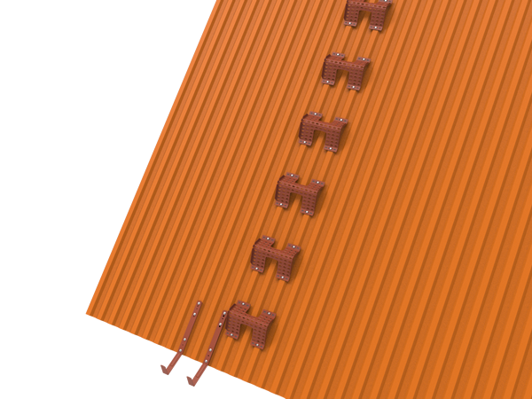 安裝快速,流程簡單,適用于金屬瓦屋頂。踏步表面有兩個行走表面,可適應不同的屋頂坡度。